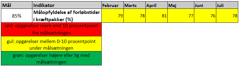Forretningsudvalget overleverede resultater og udestående, som fremgår af sagen, idet udvalget understregede, at der arbejdes videre med fokus på patienternes tilfredshed.