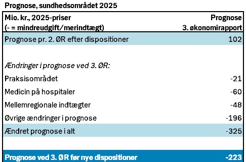 3. økonomirapport 2025 viser forventet mindreforbrug på 223 mio. kr. ift. budgettet før nye politiske dispositioner. Regionens resterende budgetreserve udgør 32 mio. kr., som er indregnet i den samlede prognose.