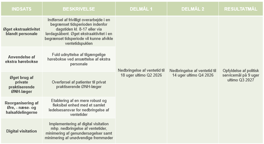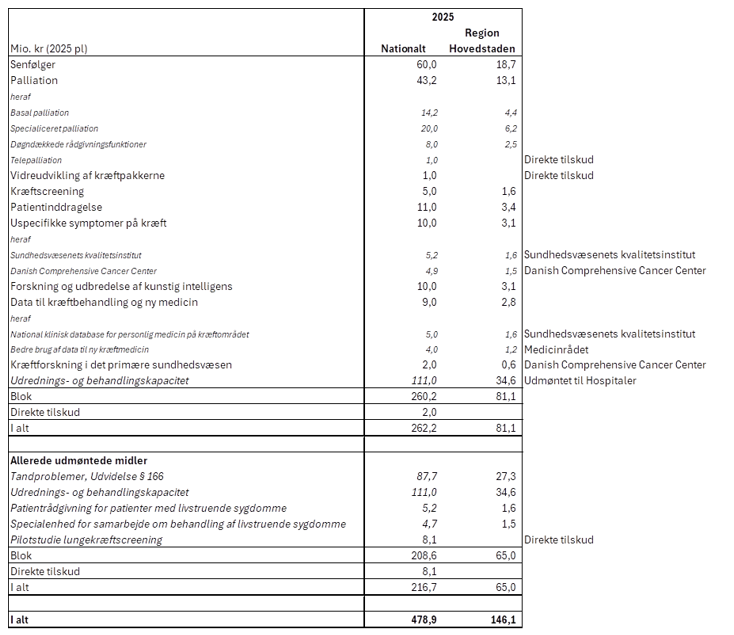 Det fremgår af Forårsaftalen, at midlerne skal anvendes til "at regionerne skal yde en særlig og målrettet indsats til at nedbringe ventetiderne til speciallægehjælp inden for de specialer i hver region, hvor de erfarede ventetider er længst. Det indebærer, at midlerne prioriteres til konkrete specialer, og at det er muligt at måle ventetid fra henvisning til 1. konsultation". Det udelukker, at midlerne anvendes til at udbygge kapaciteten hos øjenlæger og øre-, næse- og halslæger, hvor der ikke er krav om henvisning fra egen læge, og hvor den faktiske ventetid derfor ikke kan opgøres. Det udelukker også, at hospitalerne kan disponere over midlerne via "Aftale om udlægning af behandling af sygehuspatienter til speciallægepraksis". Forårsaftalen fra 25. maj 2025 er vedlagt til orientering i bilag 1.