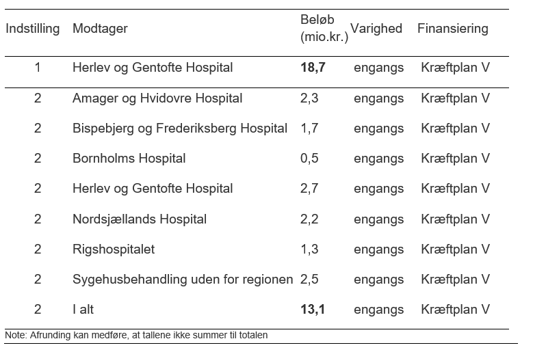 Det foreslås at anvende Region Hovedstadens andel af midlerne på knap 16. mio. kr. til at oprette to fuldtidsydernumre i børne- og ungdomspsykiatri samt konvertere en deltidspraksis til fuldtidspraksis i børne- og ungdomspsykiatri. Udvidelserne skal imødekomme et stigende antal børn og unge med psykiske lidelser og nedbringe de lange ventetider. Herudover foreslås at lave meraktivitetsaftaler indenfor neurologi og intern medicin: lungemedicin. Meraktivitetsaftaler betyder, at der tilføres mere økonomi til den økonomiske ramme for speciallægehjælp, og at speciallæger dermed vil kunne se flere patienter i speciallægepraksis i forhold til året før, inden de bliver reduceret i deres indtjening som følge af knækgrænse/omsætningsloft.