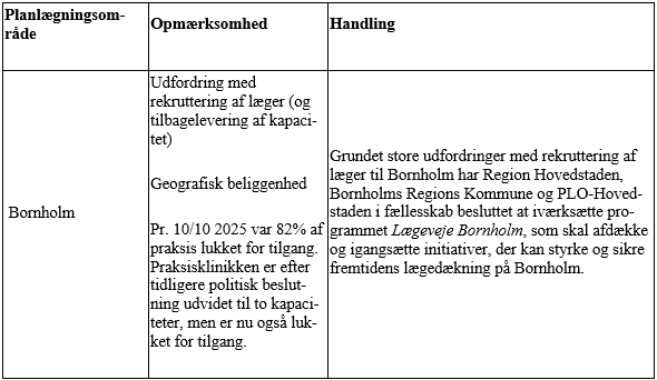 Tabel 2: Planlægningsområder med behov for særlig opmærksomhed for at sikre rettidighed og sikkerhed i lægedækningen